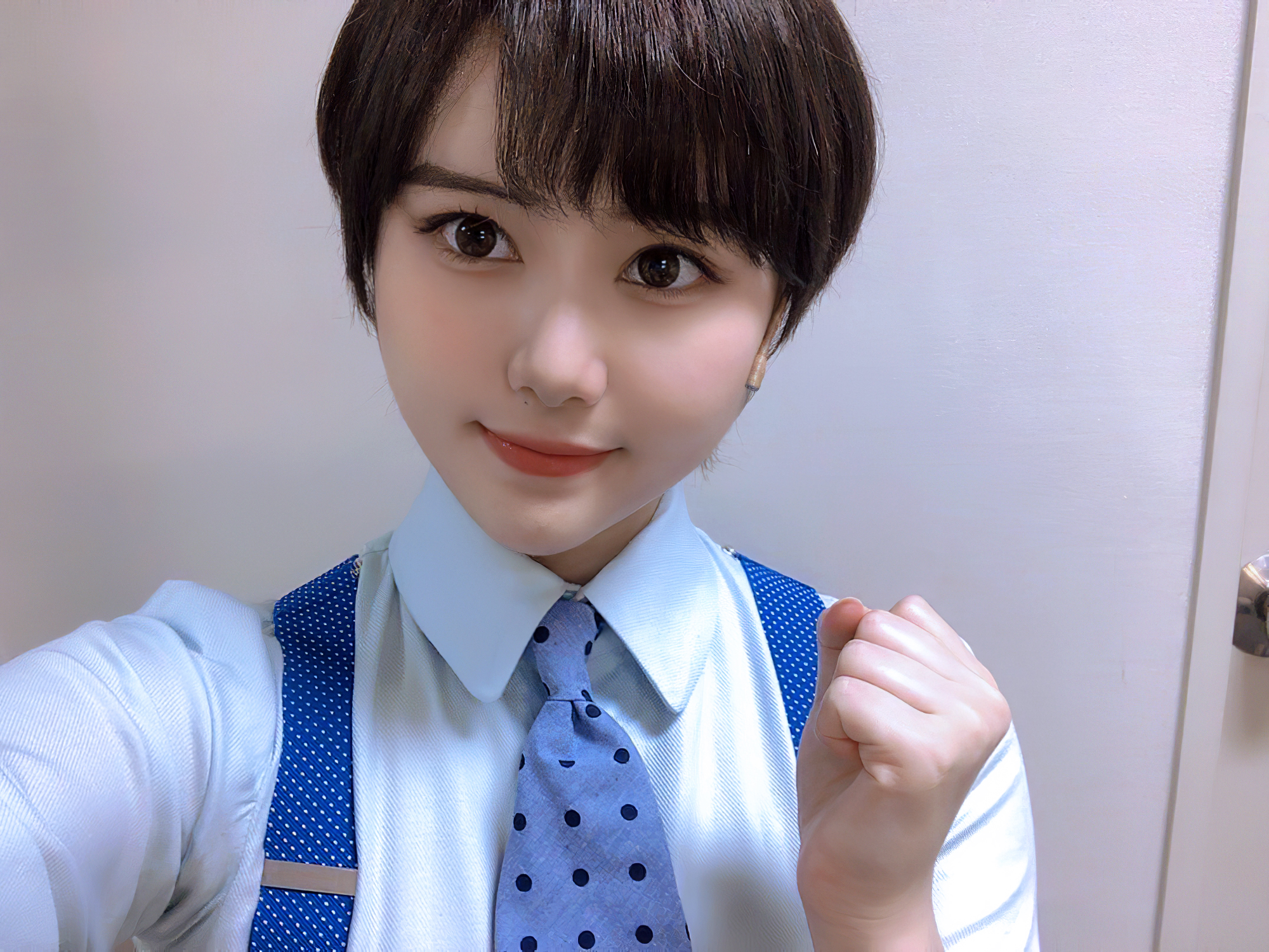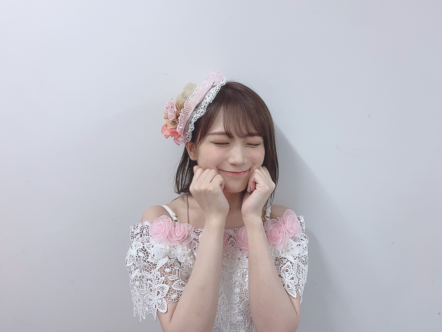 ふわふわ真っ白THE アイドル系の衣装で